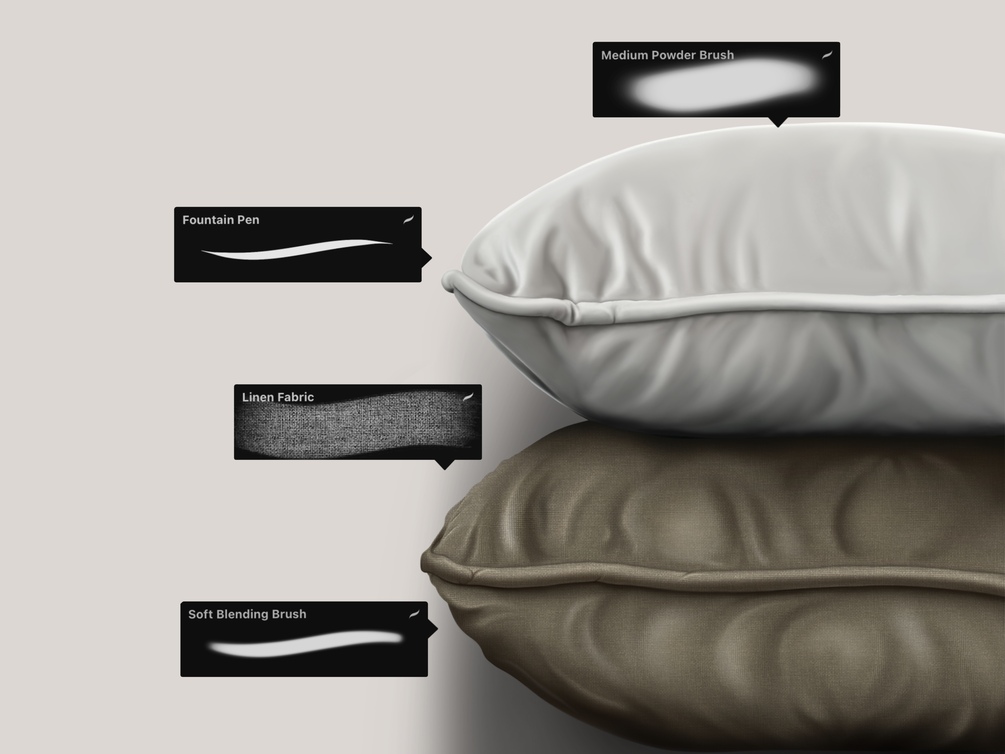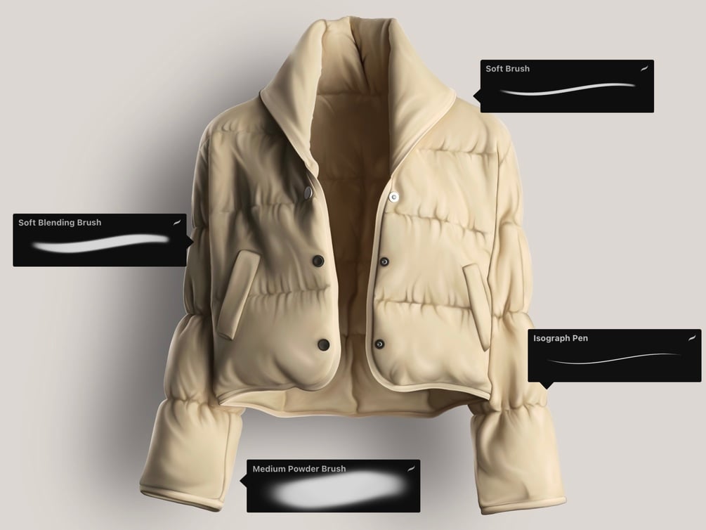 This set of textile brushes is designed to optimize creative and technical tasks, significantly speeding up, simplifying, and delivering the desired results. These brushes unlock numerous possibilities for creativity, self-expression, and design. You can utilize this brush set for various projects, including illustrations, fashion and clothing, accessory and footwear design, interior design, and decor.